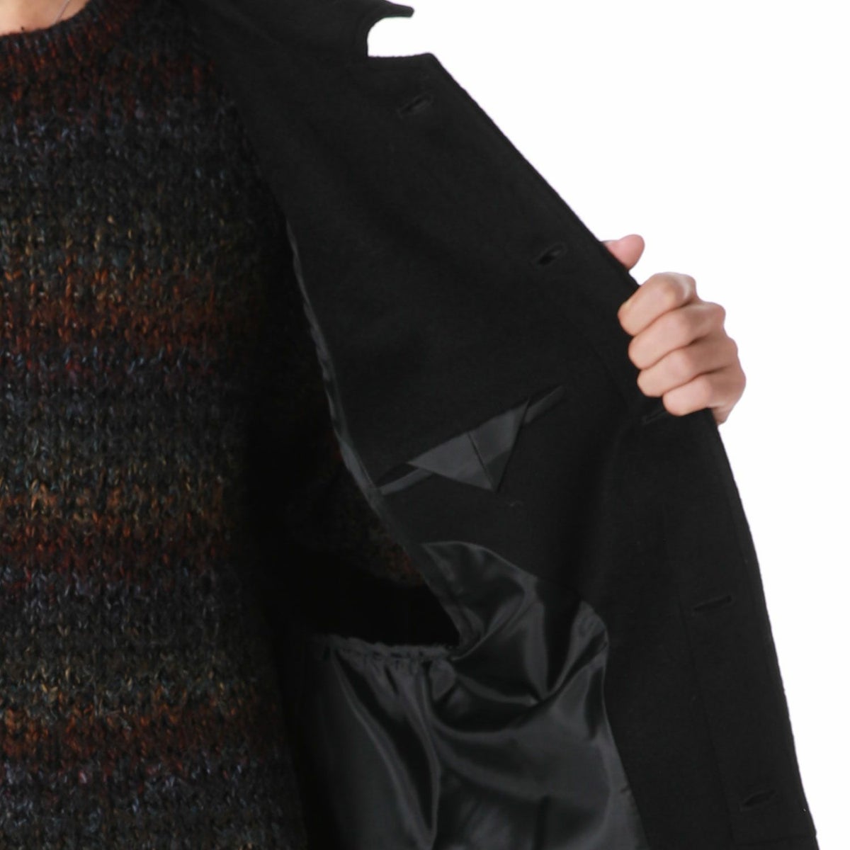 まずは持っておきたい定番の黒色系のコートです。はじめてのコート選びにお薦めです。