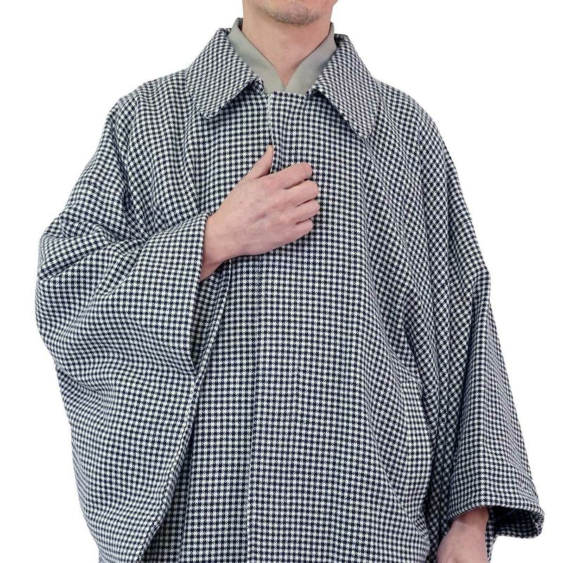 角袖コートは袖の部分が大きく開いており、着物を着用したまま羽織ることができる和装コートです。比翼ボタンで襟元や胸元もスッキリとした印象の着姿になります。