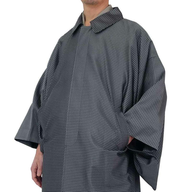 春秋などに着られる薄手の角袖コートです。袖の部分が大きく開いており、着物を着用したまま羽織ることができる和装コートで比翼ボタンで襟元や胸元もスッキリとした印象の着姿になります。