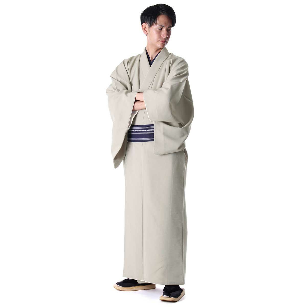 すぐに着られる動き易い男着物 洗える 紬 袷 生成り 175cm前後対応