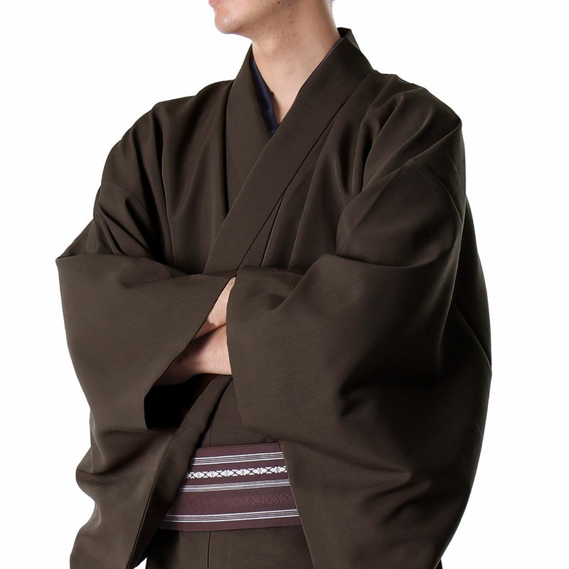 すぐに着られる男着物 洗える 紬 単衣 茶 M~L