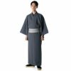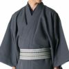 すぐに着られる男着物 洗える 紬 袷 濃グレー M~LL