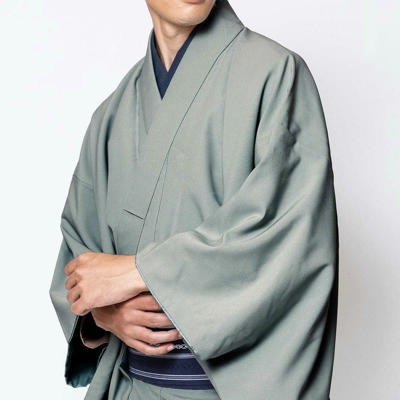 すぐに着られる男着物 洗える ちりめん 単衣 グレー 165cm~180cm前後対応 M~LL