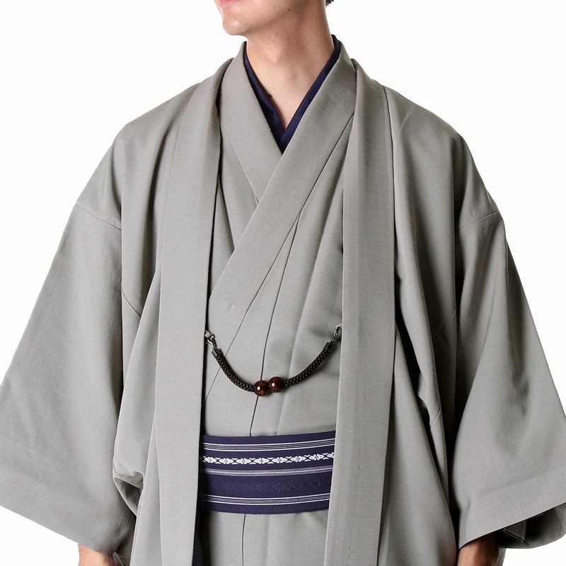 まずは着物に慣れたい方にお勧め!お手頃価格で揃う男着物10点フルセット 洗える着物 紬 グレー M~LL(春・秋・冬)