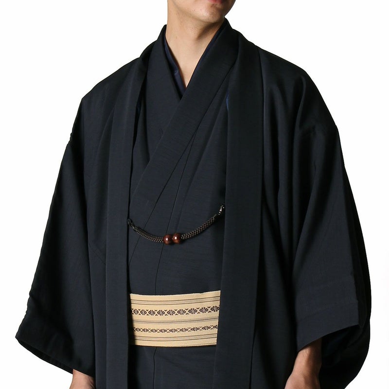 鈍い光沢を放ち、表面に小さなこぶ(フシ)がある紬の男性羽織です。見る角度によって表情変化がある生地なので、シンプルかつ上品な着こなしを楽しむことができます。冬の防寒着としてだけでなく、着流しにはない整然とした着こなしが男の魅力を引き出してくれます。また、無地なので色々な色柄の着物とも相性が良いです。帯を変えると印象が変わるように羽織を変える事でコーディネートの幅を増やしてくれます。
