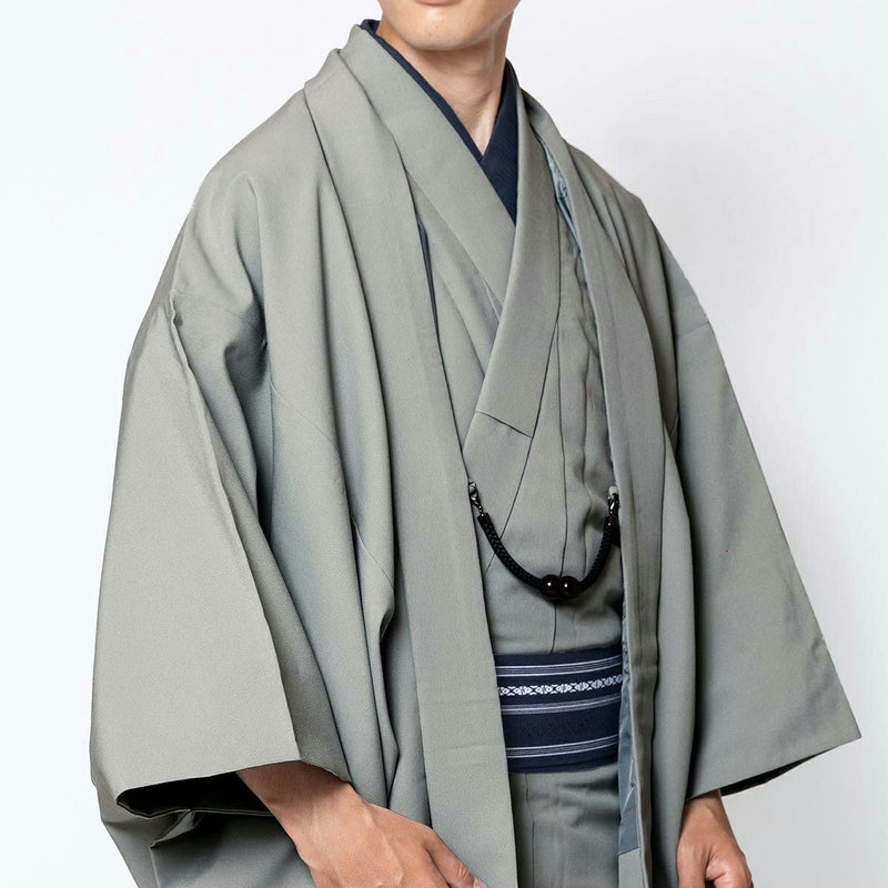 すぐに着られる男羽織 洗える 袷 ちりめん グレー 165cm~180cm前後対応 M~LL