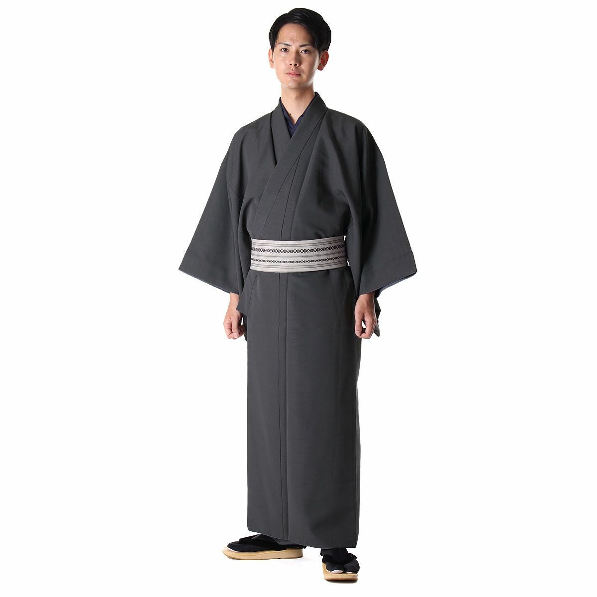 まずは着物に慣れたい方にお勧め!お手頃価格で揃う男着物10点フルセット 洗える着物 紬 濃グレー M~LL(春・秋・冬)