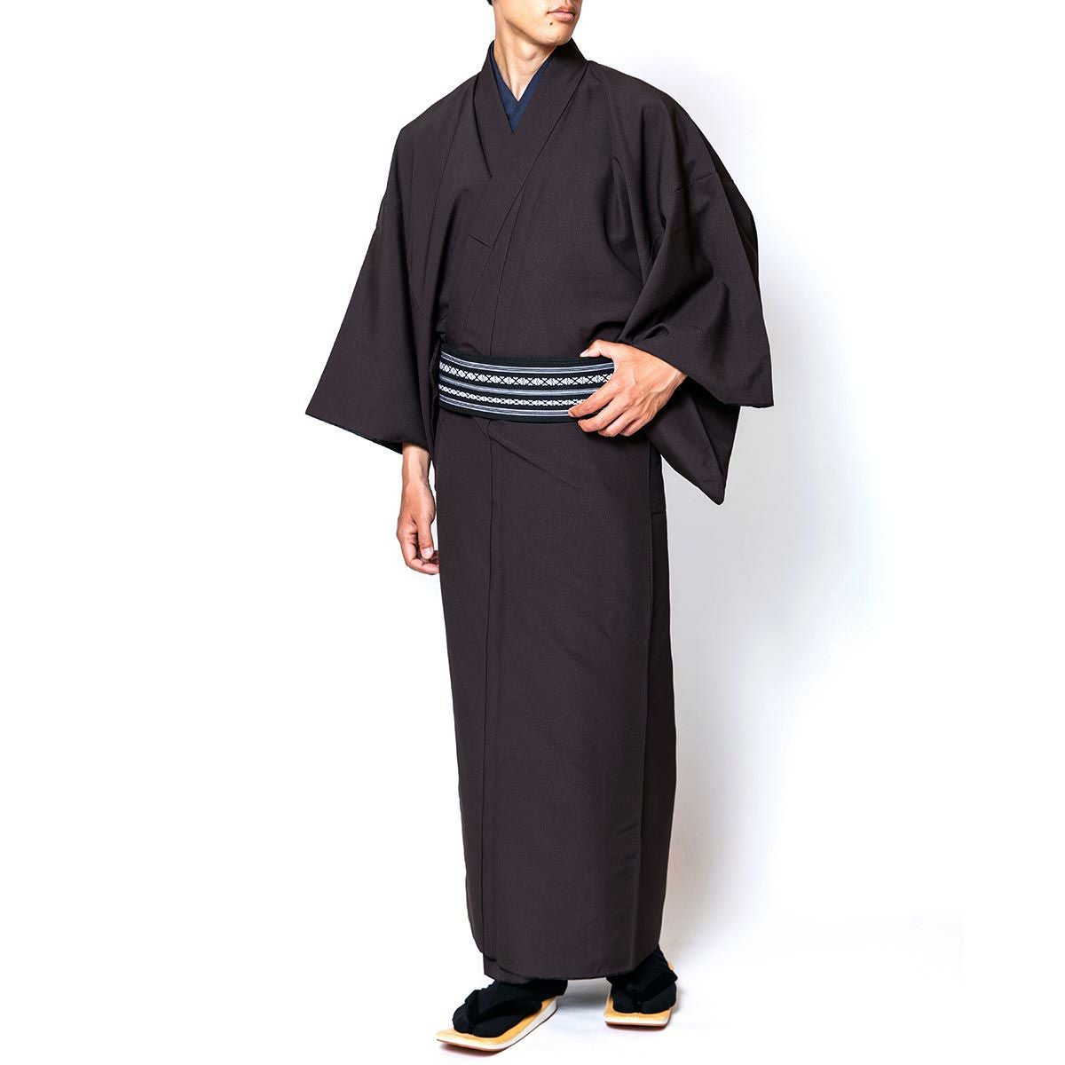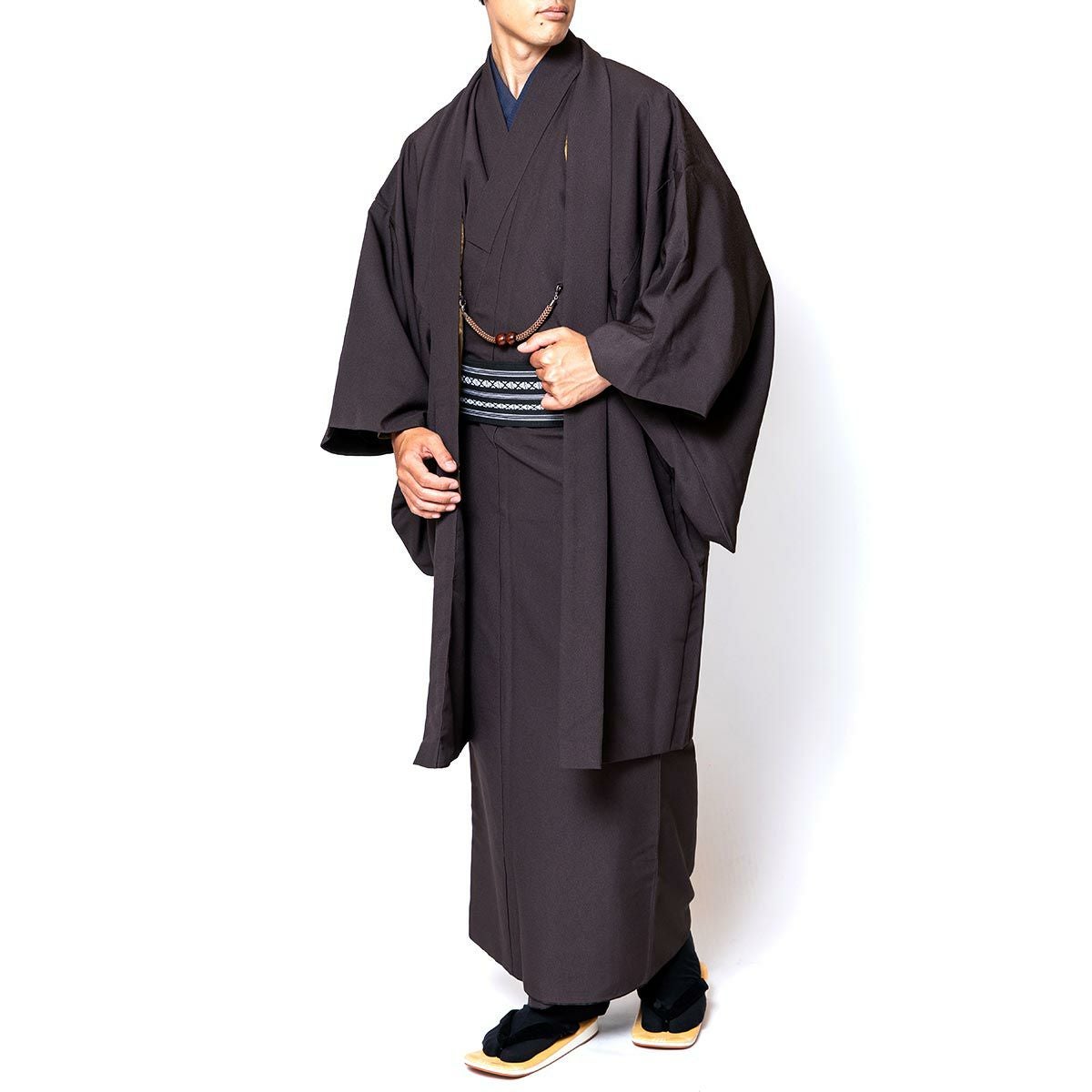 大きいサイズ!茶道やセミフォーマルなシーンに!お手頃価格で揃う 男着物10点フルセット 洗える着物 ちりめん 焦茶 3L(春・秋・冬)