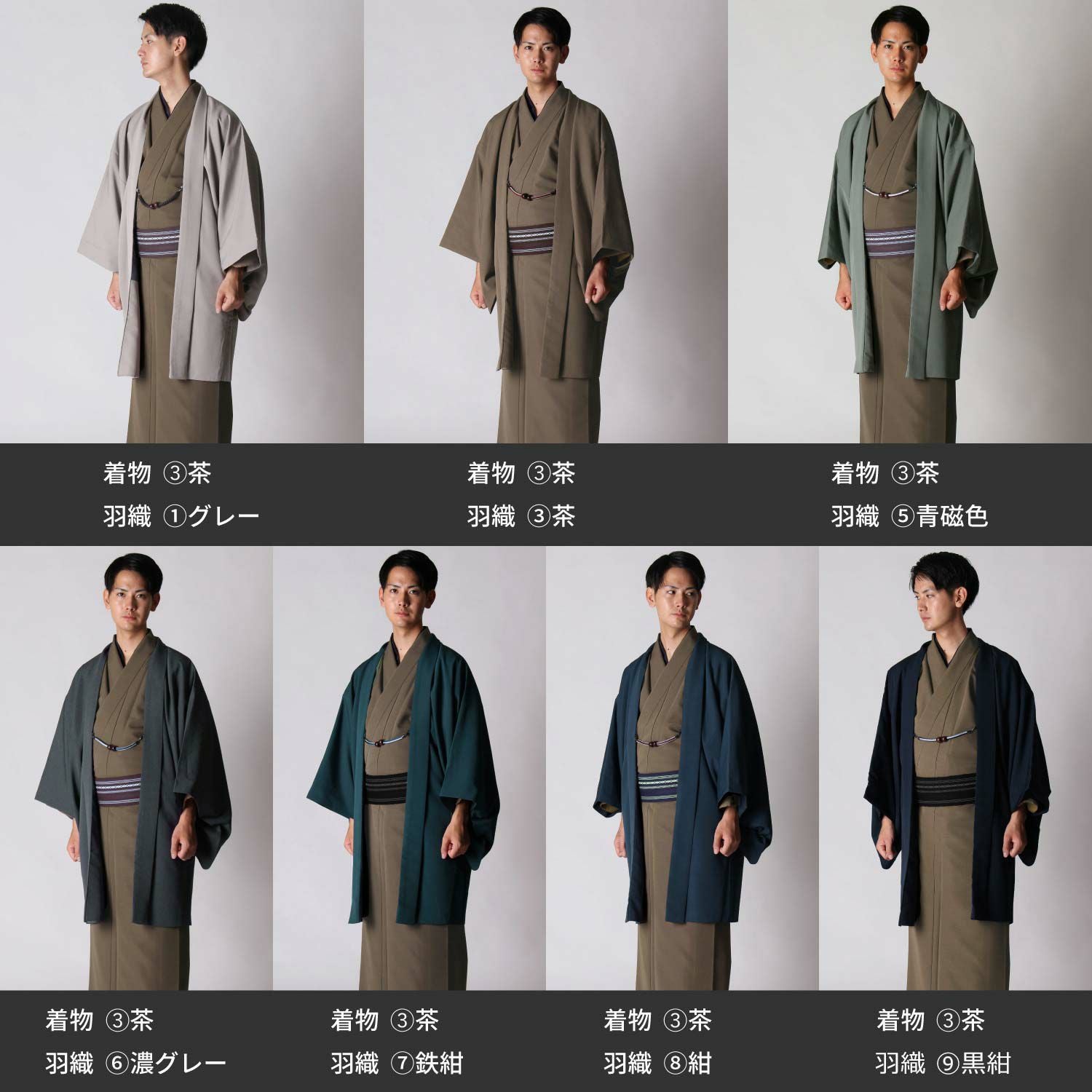 着物と羽織をお好みの色から選んで頂けるので自分好みの組み合わせができます。ご注文後に仕立て内容と共にお色を打ち合わせさせて頂きます。