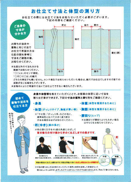 採寸に必要な物はもちろん仕立て上がってからの着用方法なども解決してくれるガイドブック付きです。