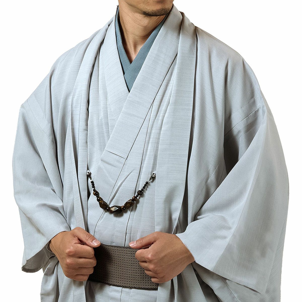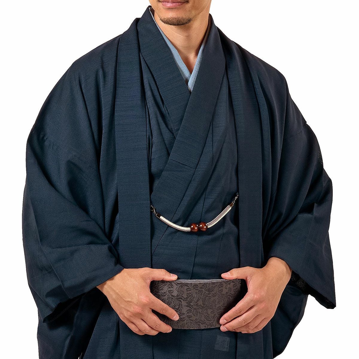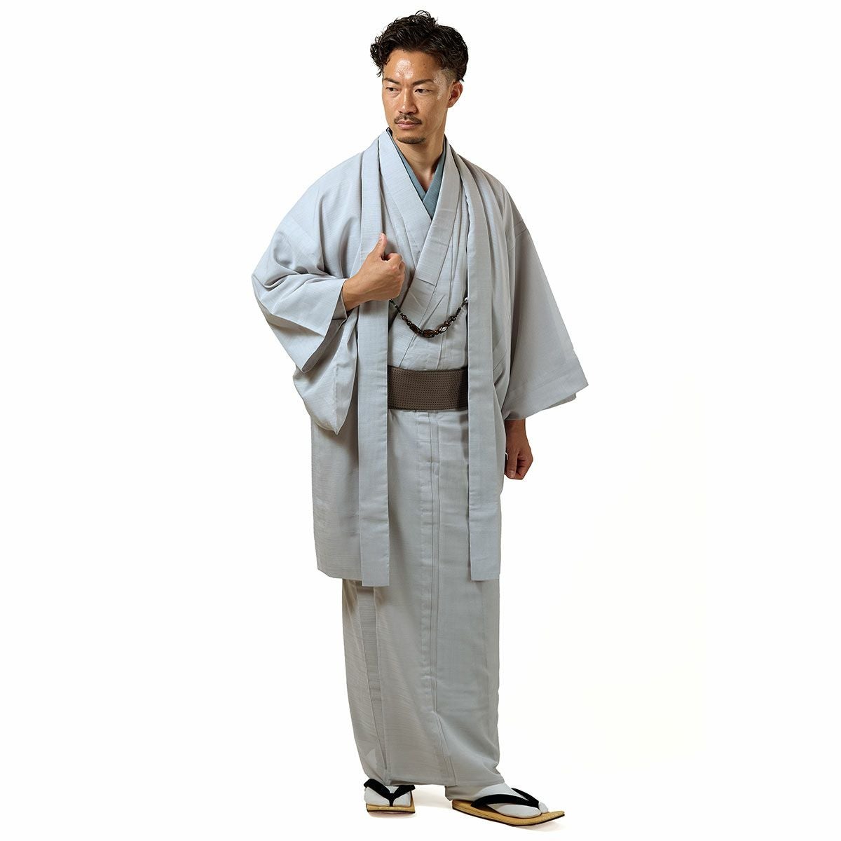 男性着物の羽織は寒い日の防寒着だけでなくスーツでいうとジャケットにあたりますので、お祝いの席など改まった場面で”きちんと感”を出す事ができて、着物や小物等の色々な組合せによってシーンに合わせたコーディネートを楽しむことができます。また羽織の長さは基本的に膝前後位が立ち振る舞いがキレイに見えます。