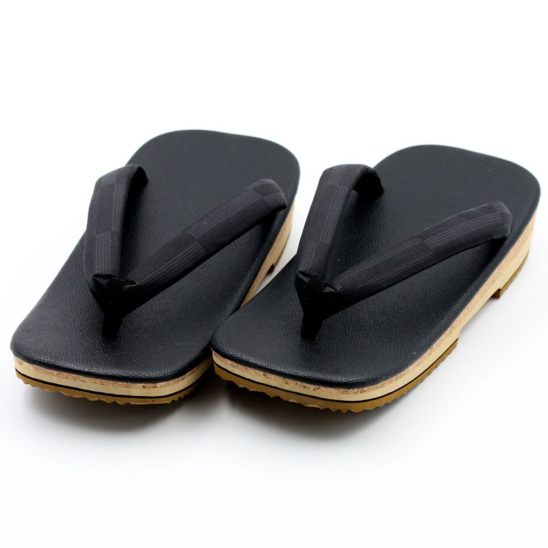 和装の履物はクッション素材を用いることも少なく、底部分が直接地面にあたるので靴と比べても足への負担も少なくありません。また、鼻緒を足指ではさみ履くので、履き慣れていない方にとっては最初は疲れることもしばしばです。こちらの草履はEVAのコルク素材を用いています。水に強く、軽量で柔軟性と弾力性があり丈夫な素材です。耐久性もあるので長く履いていただけます。