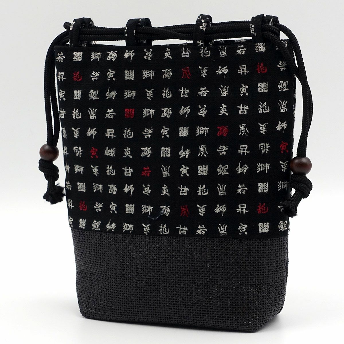 巾着袋 信玄袋 風神雷神 黒 日本製
