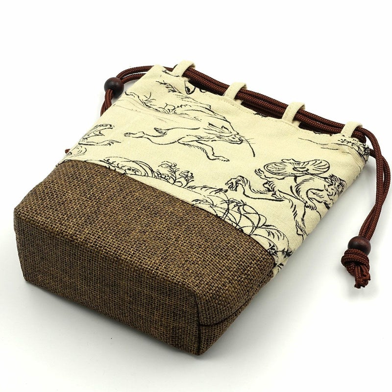 巾着袋 信玄袋 鳥獣戯画 ベージュ 日本製