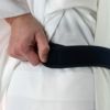 ⑧着物をはおり、着物の上前に着物ベルトを付けておきます