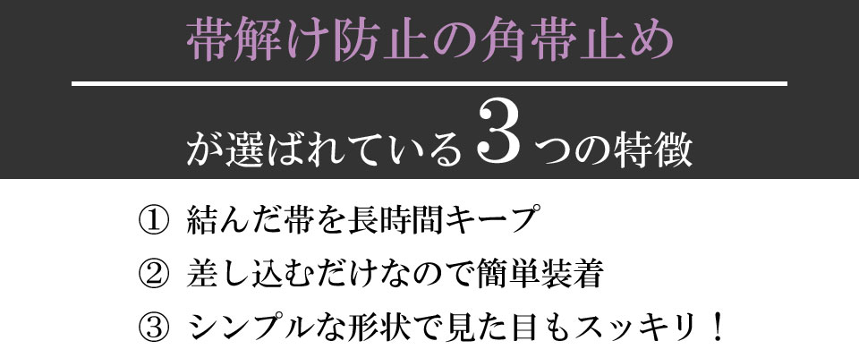 小さくてシンプルな形状で着用しても見た目もスッキリしています。 先端部分は丸みがありますので帯本体を傷つけることもなく、どの帯色に合わせられます。