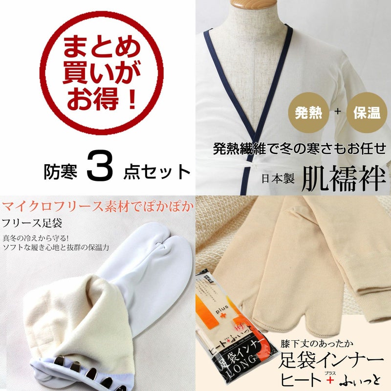 ①肌襦袢、②フリース足袋、③足袋インナーソックス |