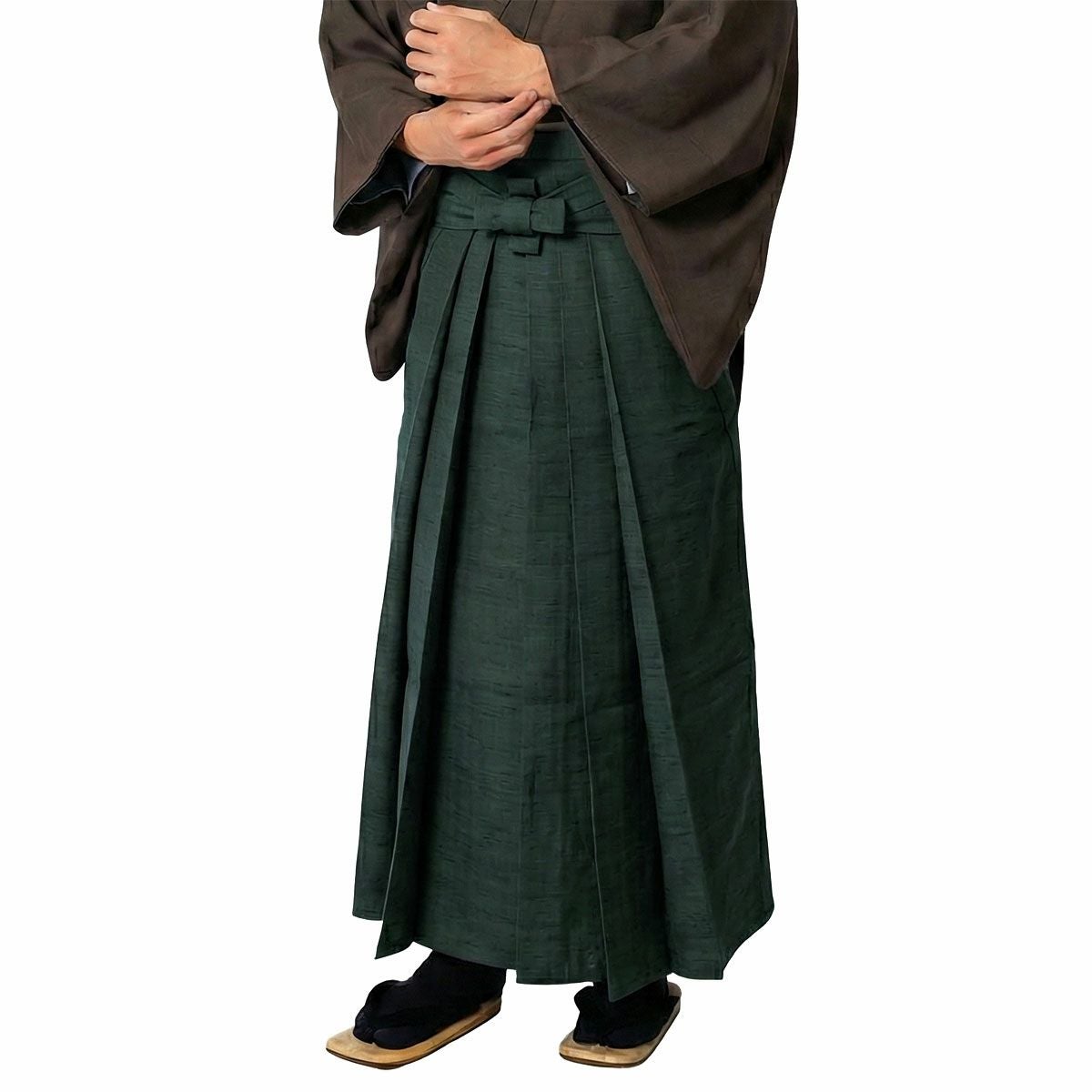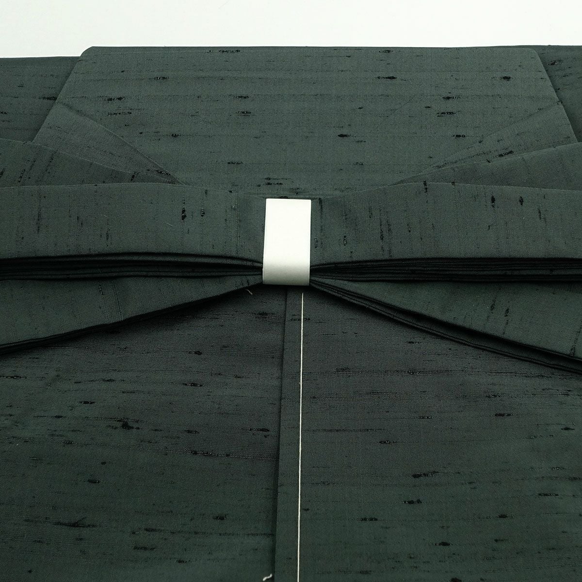 一般的なコシと厚みのある袴地よりも薄手でしなやかな、「紬の着物地」で仕立てた正絹馬乗り袴です。生地に適度な柔らかさがあるため肌馴染みが良く、座り動作や歩行時の裾さばきがスムーズで、動きやすいのが特長です。茶道や落語、セミフォーマルなシーンから普段使いまで、幅広く着回せる希少な「無地紬」の袴です。