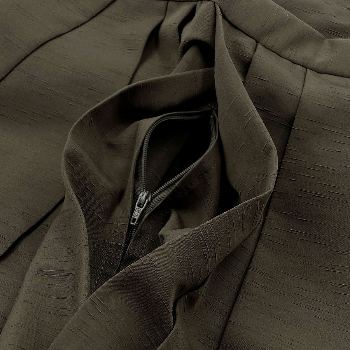 袴を着用する際、多くの方が悩まれるのがお手洗いです。特に馬乗り袴は着脱に手間がかかりますが、こちらの袴は中心にファスナーを備えた特別仕様。紐を解いたり裾をたくし上げたりする必要がなく、スムーズに用を足すことができます。ファスナーはヒダの間に隠れるため、外見を損なう心配もありません。紬無地ならではの落ち着いた風合いと、現代的な機能性を両立。「袴は不便」という常識を変える、ストレスフリーな一着です。
