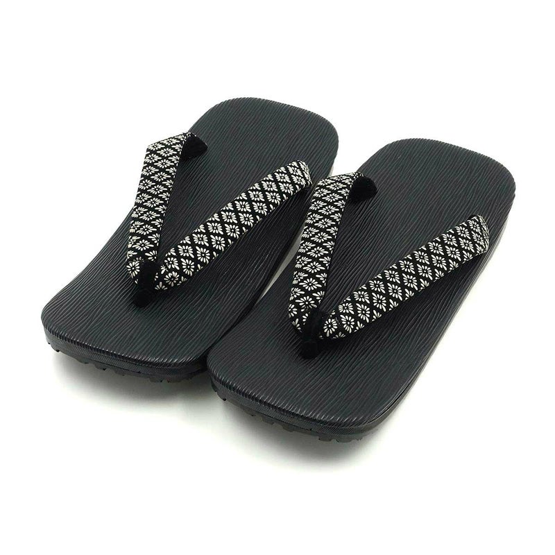 滑りにくい草履 印伝風 菊小紋 黒台 エピ ラジアルウレタン底 23cm~26.5cm位まで対応 M~LL