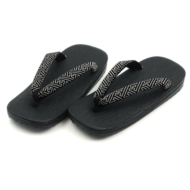 滑りにくい草履 印伝風 紗綾型 黒台 エピ ラジアルウレタン底 23cm~26.5cm位まで対応 M~LL