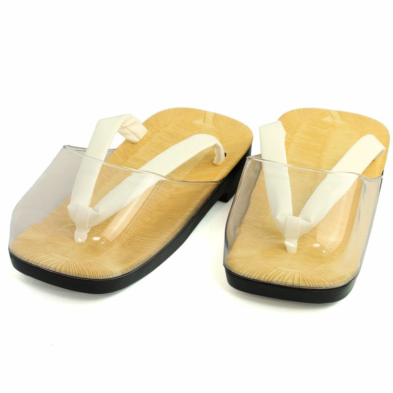 表:ビニール畳表白鼻緒 裏:ウレタン底 爪:透明爪付(カバー部分は取り外しは出来ません)
