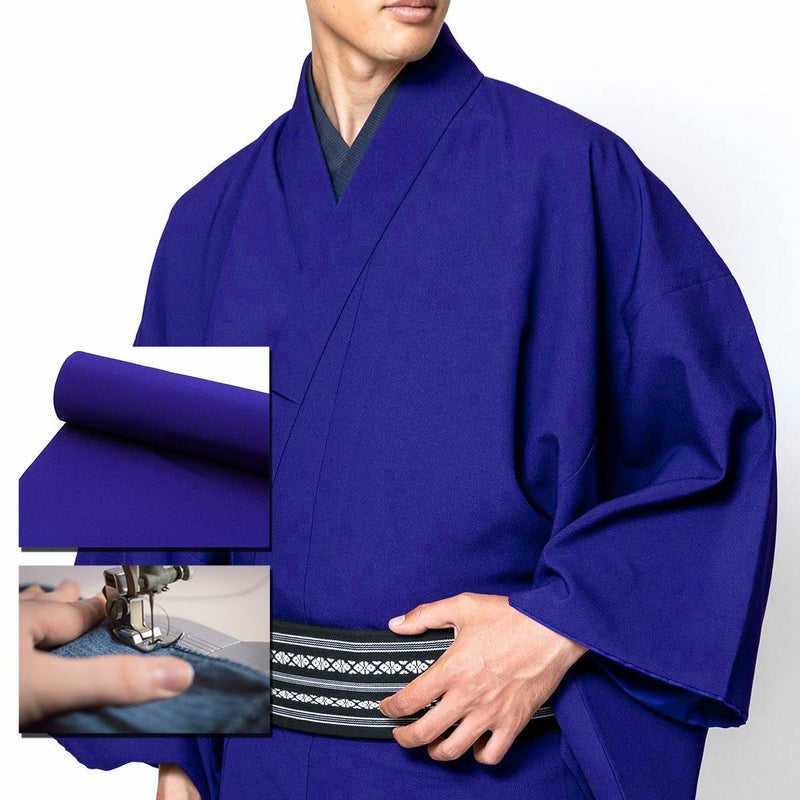日本製のちりめん生地でシワになりにくいのが特長です。ポリエステル素材なので自宅の洗濯機で洗うことも可能。洋服と同じように取扱いでき、畳んでも嵩張らないので、旅行先への持ち運びにも適しています。