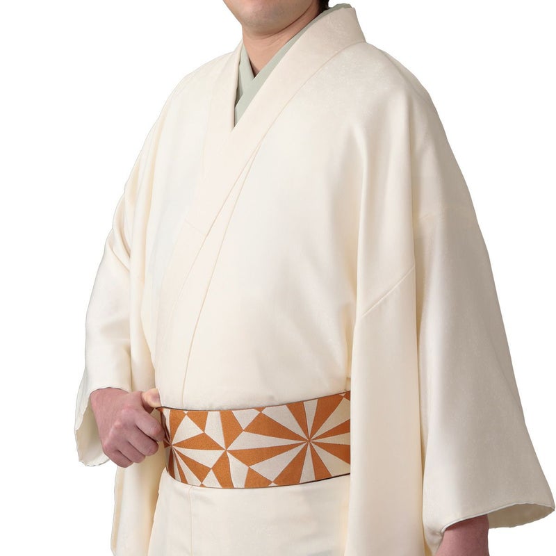 男性着物は無地が一般的ですが、普段着やお出かけ着には古典柄のデザインでいつもと違った装いをお楽しみ頂けます。ちりめん風で柔らかく光沢感があるので上質な着こなしになります。