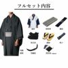 1)仕立て上がり着物(袷):ポリエステル100% 2)仕立て上がり羽織(袷):ポリエステル100% 3)仕立て上がり半襦袢:身頃:綿100% 袖と衿:ポリエステル100% 4)献上柄角帯:綿100% 5)雪駄:台部分はビニール皮、鼻緒部分はポリエステル 6)羽織紐:紐:絹100% 7)信玄袋:本体|綿85%、麻15% 8)黒足袋(M~LL):ストレッチ丸首足袋 表:ポリエステル100% 裏:綿100% ※大きいサイズは4枚こはぜの綿100% 9)男締め:ゴム40% ポリエステル30% レーヨン30% 10)腰紐:ポリエステル100%