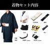 1)仕立て上がり紗の着物(単衣):ポリエステル100% 2)仕立て上がり紗の羽織(単衣):ポリエステル100% 3)仕立て上がり駒絽・長襦袢:ポリエステル100%(色は当店お任せ) 4)博多織正絹角帯:正絹:100% 5)雪駄 台部分はビニール皮、鼻緒部分はポリエステル 6)羽織紐:紐:絹100%(色は当店お任せ) 7)信玄袋:本体|綿85%、麻15%(色柄は当店お任せ) 8)黒足袋(M~LL):ストレッチ丸首足袋 表:ポリエステル100% 裏:綿100% ※大きいサイズは4枚こはぜの綿100% 9)男締め:ゴム40% ポリエステル30% レーヨン30% 10)腰紐:ポリエステル100%
