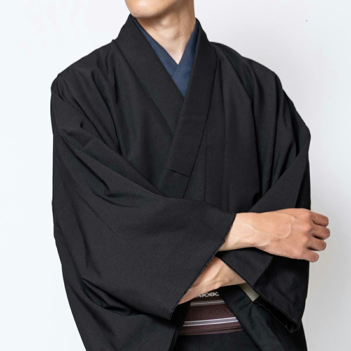 すぐに着られる男着物 洗える ちりめん 袷 黒 165cm~180cm前後対応 M~LL