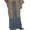 セミフォーマルに着られる 袴付きの男着物11点フルセット 洗える着物 ちりめん 淡茶 M~LL(春・秋・冬)