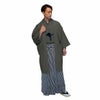 セミフォーマルに着られる 袴付きの男着物11点フルセット 洗える着物 ちりめん 濃グレー M~LL(春・秋・冬)