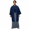 セミフォーマルに着られる 袴付きの男着物11点フルセット 洗える着物 ちりめん 濃紺 M~LL(春・秋・冬)