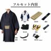 1)仕立て上がり着物(袷):ポリエステル100% 2)仕立て上がり羽織(袷):ポリエステル100% 3)仕立て上がり半襦袢:身頃:綿100% 袖と衿:ポリエステル100%(色は当店お任せ) 4)献上柄角帯:綿100%(ベージュ) 5)雪駄:台部分はビニール皮、鼻緒部分はポリエステル 6)羽織紐:紐:絹100%(色は当店お任せ) 7)信玄袋:本体|綿85%、麻15%(色柄は当店お任せ) 8)黒足袋(M~LL):ストレッチ丸首足袋 表:ポリエステル100% 裏:綿100% ※大きいサイズは4枚こはぜの綿100% 9)男締め:ゴム40% ポリエステル30% レーヨン30% 10)腰紐:ポリエステル100%
