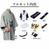 小さいサイズ!茶道やセミフォーマルなシーンに!お手頃価格で揃う 男着物10点フルセット 洗える着物 ちりめん グレー SS~S(春・秋・冬)