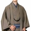 茶道やセミフォーマルなシーンに!お手頃価格で揃う 男着物10点フルセット 洗える着物 ちりめん 淡茶 M~LL(春・秋・冬)