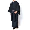大きいサイズ!茶道やセミフォーマルなシーンに!お手頃価格で揃う 男着物10点フルセット 洗える着物 ちりめん 黒 3L(春・秋・冬)
