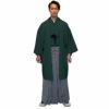 セミフォーマルに着られる 袴付きの男着物11点フルセット 洗える着物 ちりめん 深緑 M~LL(春・秋・冬)