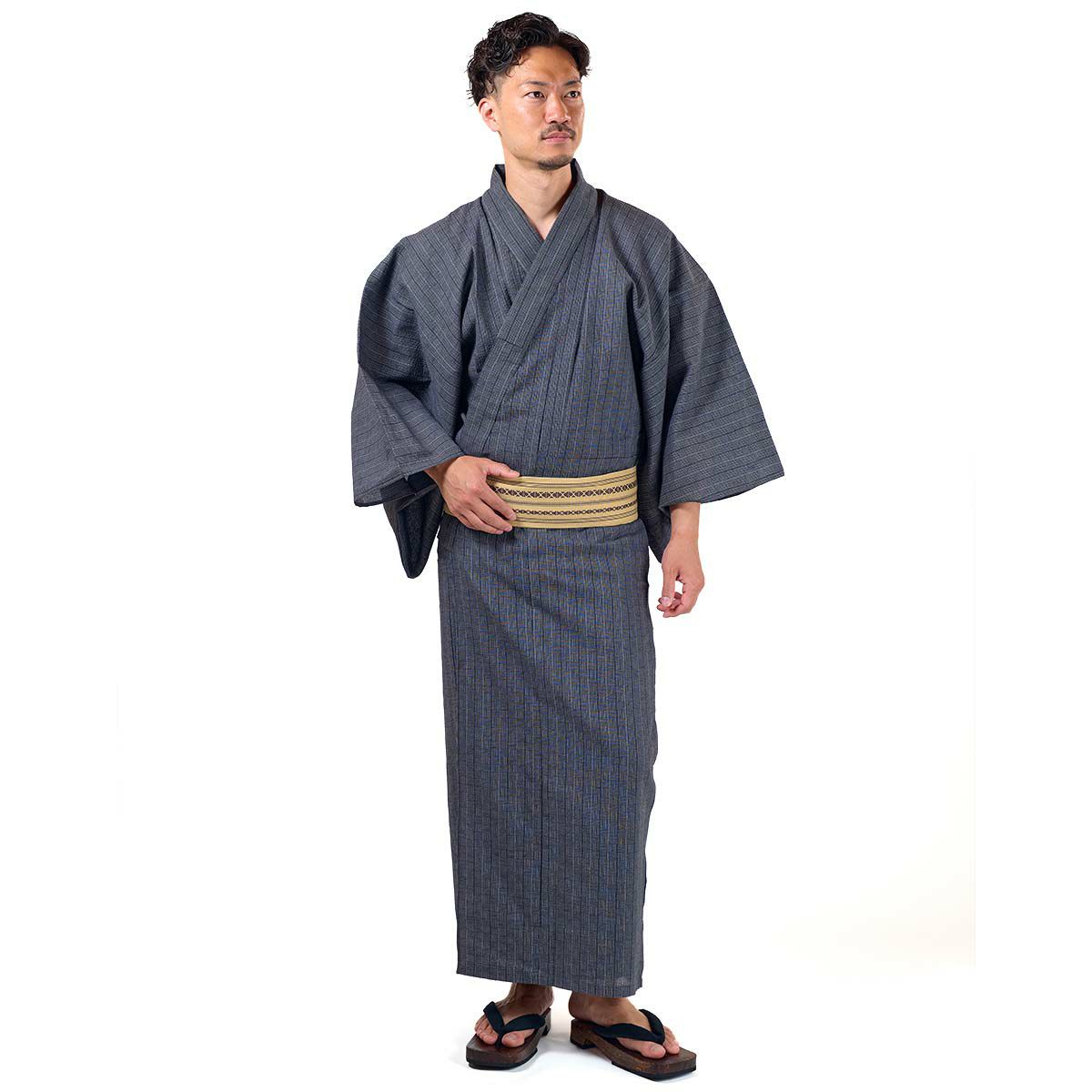 英語ガイドブック付き メンズ浴衣 セット しじら綿麻