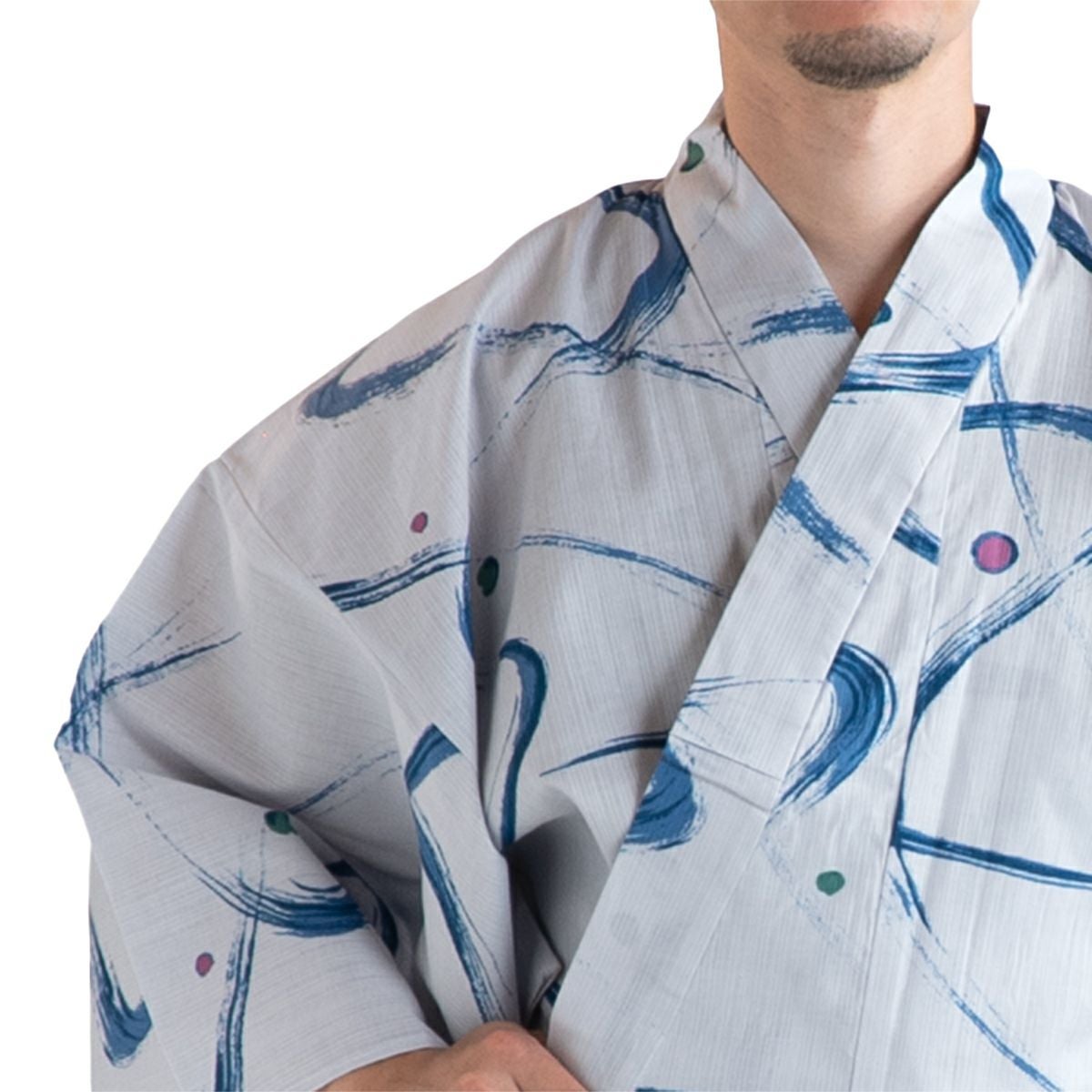 メンズ浴衣 滝流れ 綿 曲線に点 ブルーグレー
