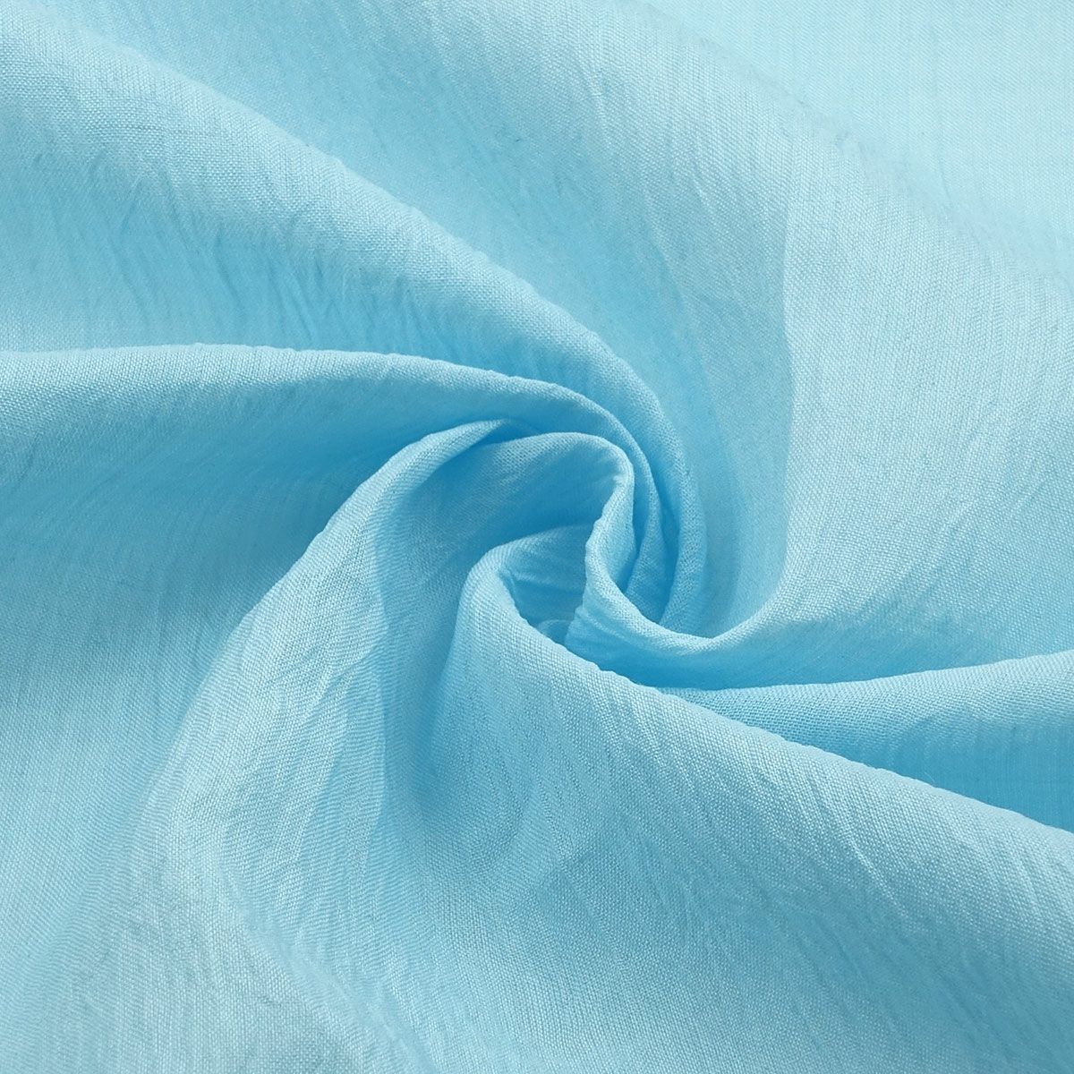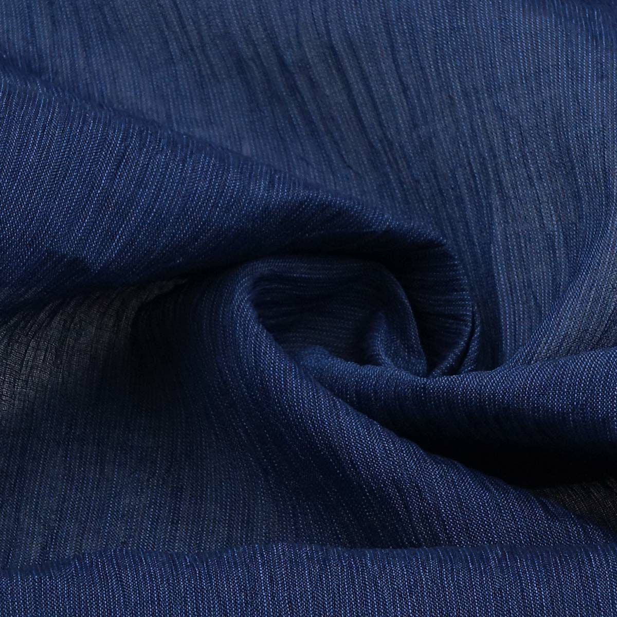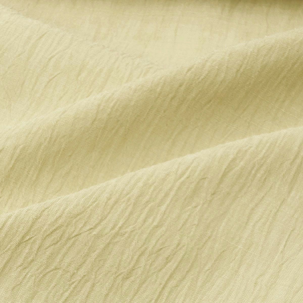 綿素材に麻が含まれていて、綿のもつ柔らかさと麻のシャリ感を併せ持つ素材です。シャリ感があるのでべたつきにくいのも特長です。先染めのものが主流で生地もしっかりしてて透けにくく、表面に風合いのあるものが人気です。