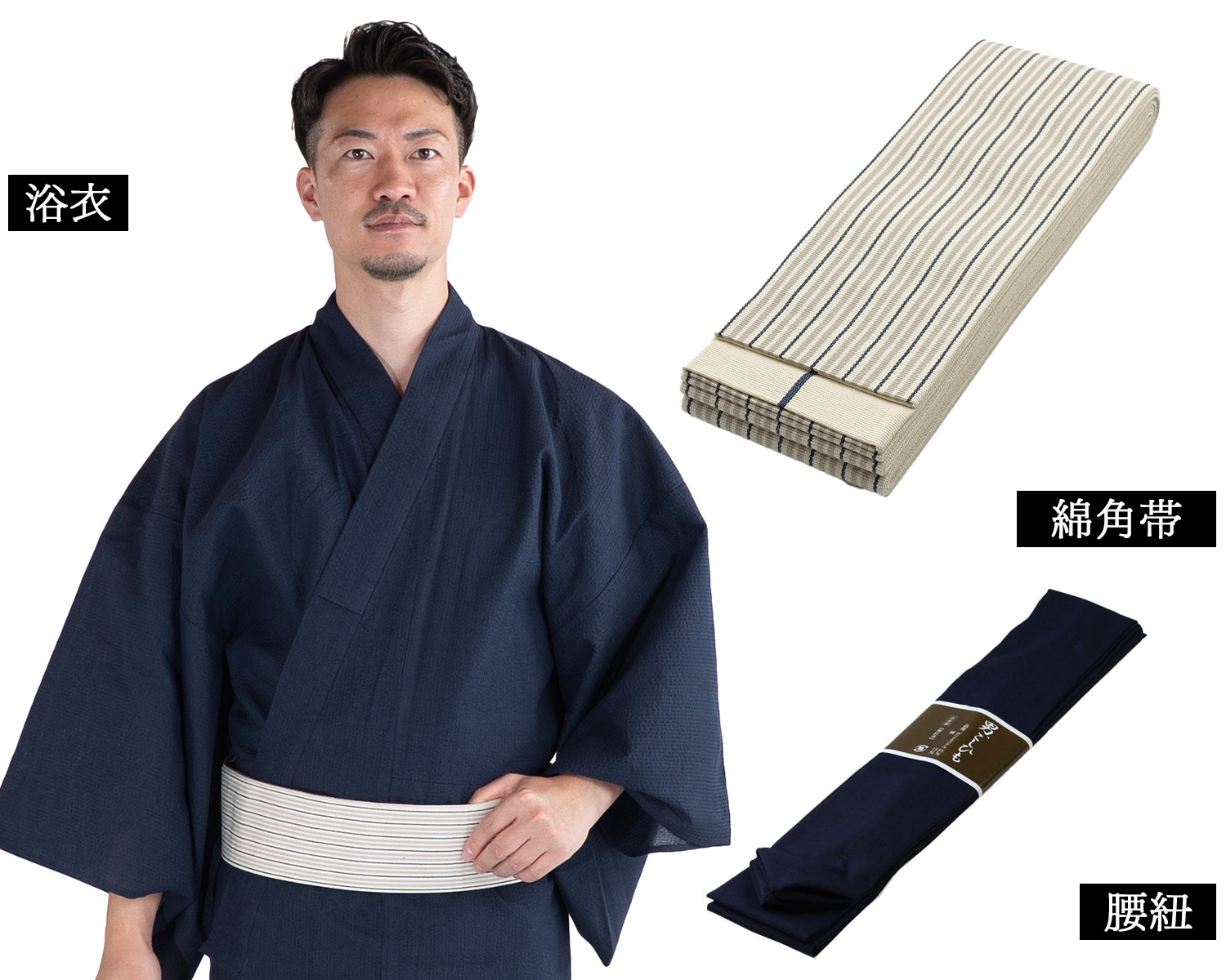 身長195cm位の方でも着られる細かい凹凸のある織りと程良いシャリ感のある綿麻浴衣なので、汗をかいても肌に張り付きにくいのが特長です。シンプルな色柄でコーディネートしやすい定番の浴衣です。