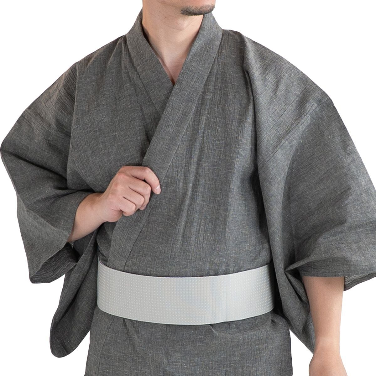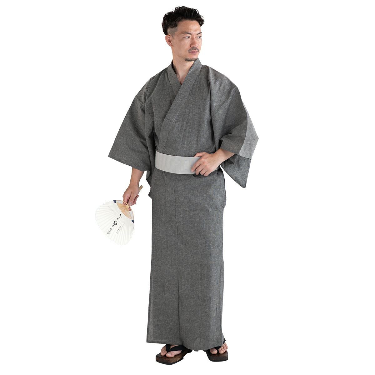 正統派の大人浴衣セット 近江ちぢみ 綿麻 無地 グレー 165cm~185cm前後対応 M~LL (浴衣+綿角帯+男締め)