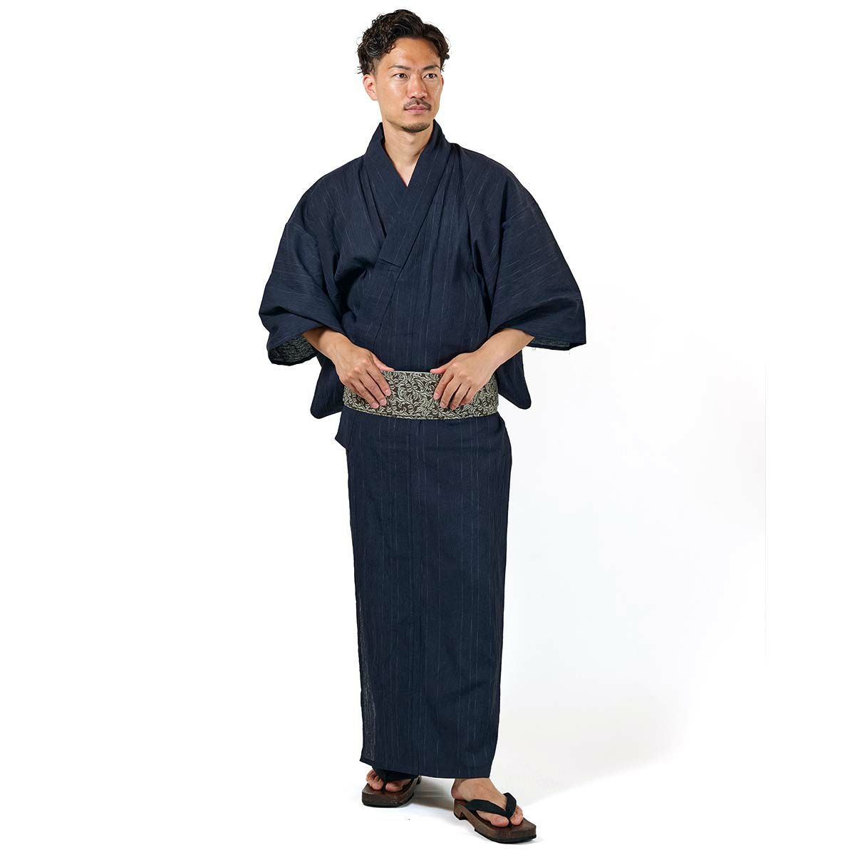 メンズ浴衣 単品 近江ちぢみ綿麻 かすれ縞 濃紺 165cm~185cm前後対応 M~LL