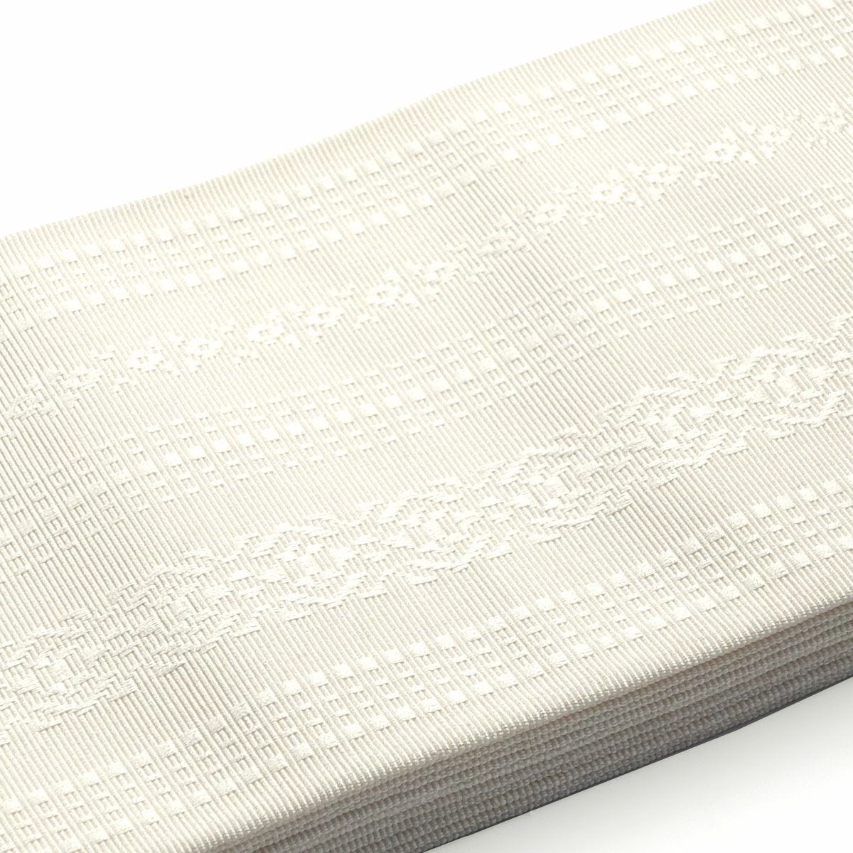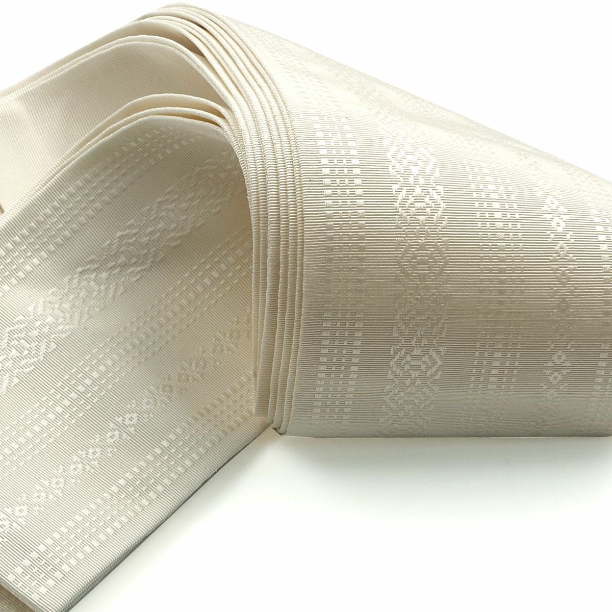 正絹着物と洗える着物とでは見た目の違いは分かりにくいですが、帯ははっきり分かります。艶があって高級感を感じさせてくれる正絹の角帯は見た目以外にも締めやすさにも定評があります。一般的に格が下と思われがちな「洗える着物」であっても、正絹の角帯を締めるだけで着姿の印象は品のある着こなしに変わります。