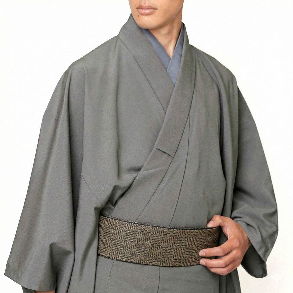 角帯 桐生織 変わり格子 グレージュ