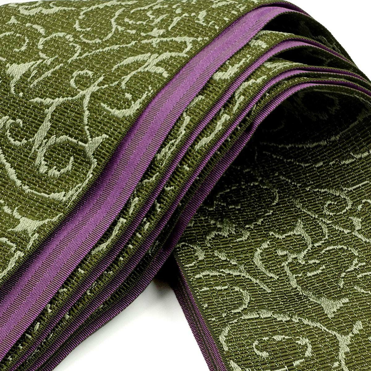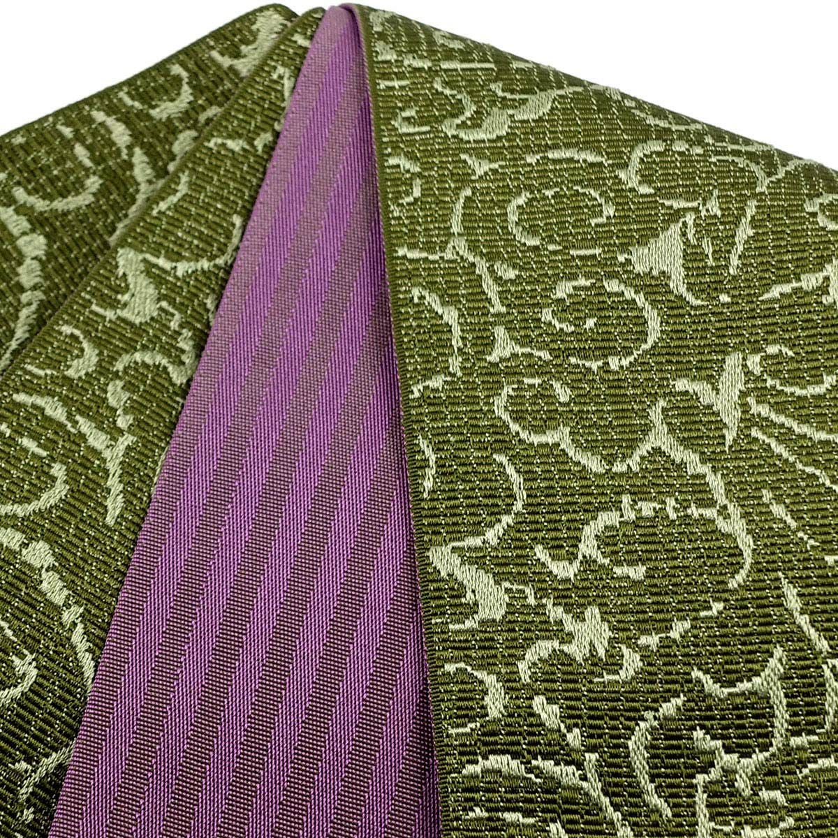 角帯 アカンサス 植物文様 抹茶