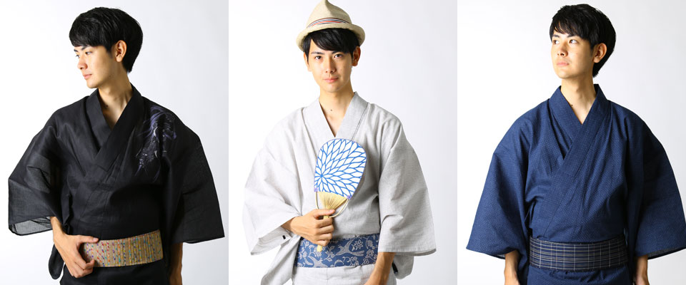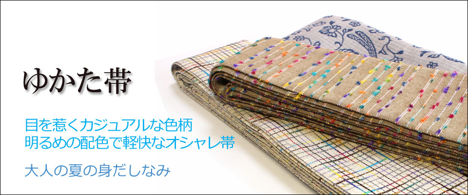 浴衣の帯は大きく分けて角帯と兵児帯に分かれます。角帯は色柄のバリエーションが豊富で締め方・結び方も色々あるのでコーディネートを楽しめます。やはり正絹の帯が滑りにくく一番締めやすいのでお洒落に着こなすならお薦めですが、普段着用や練習には綿でもよいでしょう。兵児帯は帯結びの苦手な方にはお薦め!
