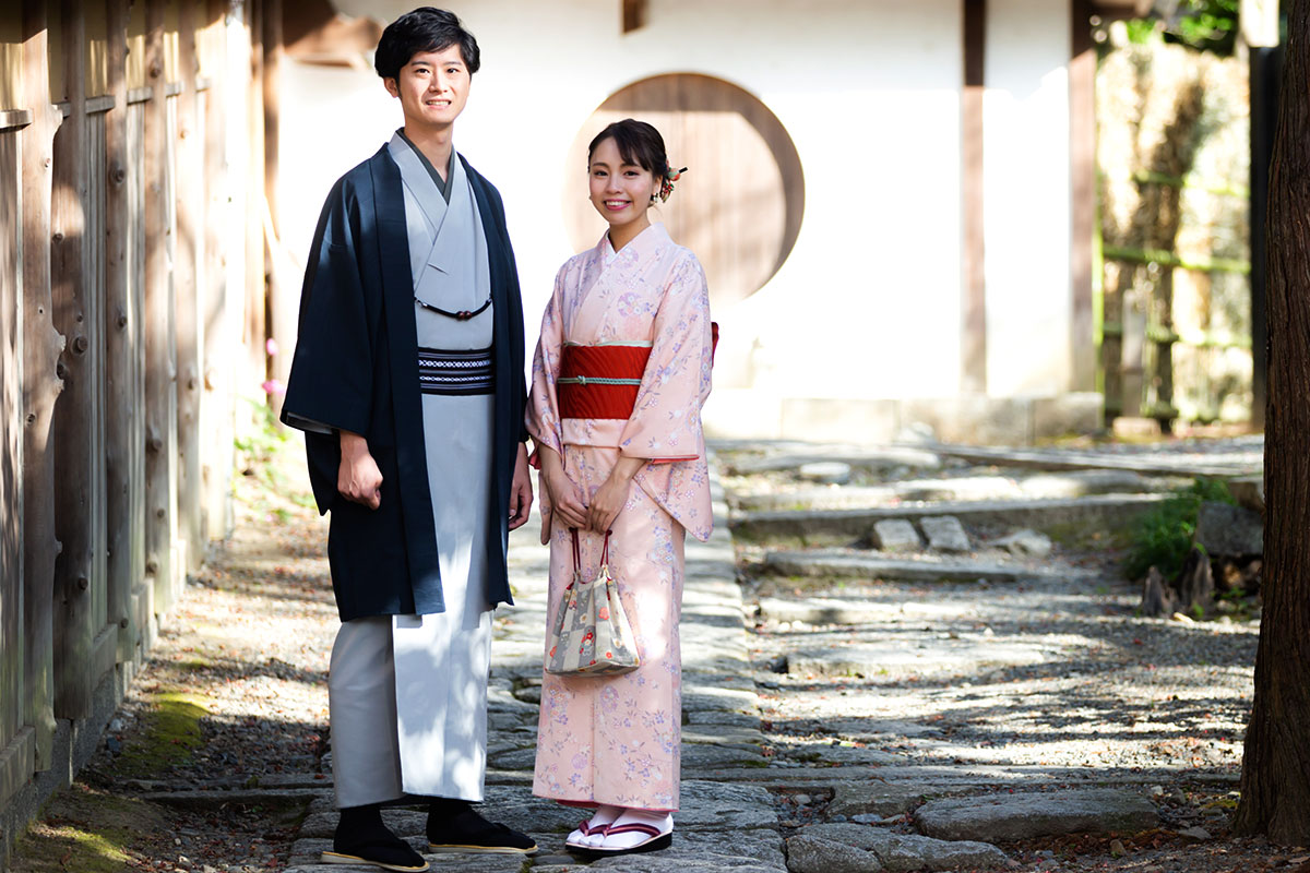 着物は古典柄を中心に取り揃え、帯はお太鼓結び。ぐっと本格的に上品に見え、ワンランク上の着こなしを楽しんでいただけます。